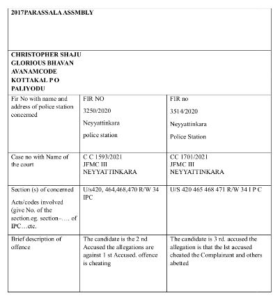 ക്രിസ്റ്റഫർ ഷാജുവിൻ്റെ കേസിനാധാരമായ റിപ്പോർട്ട് - തിരുവന്തപുരം: ഷാജു പലിയോട് എന്ന പേരിൽ നിയമസഭാ ഇലക്ഷനിൽ മത്സരിക്കുന്ന സ്ഥാനർത്ഥിക്ക് എതിരെ ഗവൺ മെൻ്റ് രേഖയിൽ കാണപ്പെടുന്ന ചില കേസിൻ്റെ വിശദാoശങ്ങൾ ഇന്ത്യൻ നിയമത്തിൻ്റെ ഭാഗമായി പൊതു ജനങ്ങളുടെ അറിവിലേക്ക് പ്രസിദ്ധപ്പെടുത്തുന്നു.